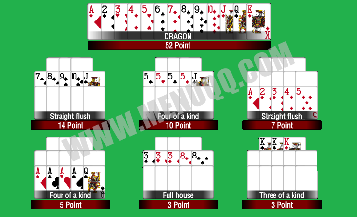 – FOUR OF KIND di susunan tengah akan mendapatkan 10 point.